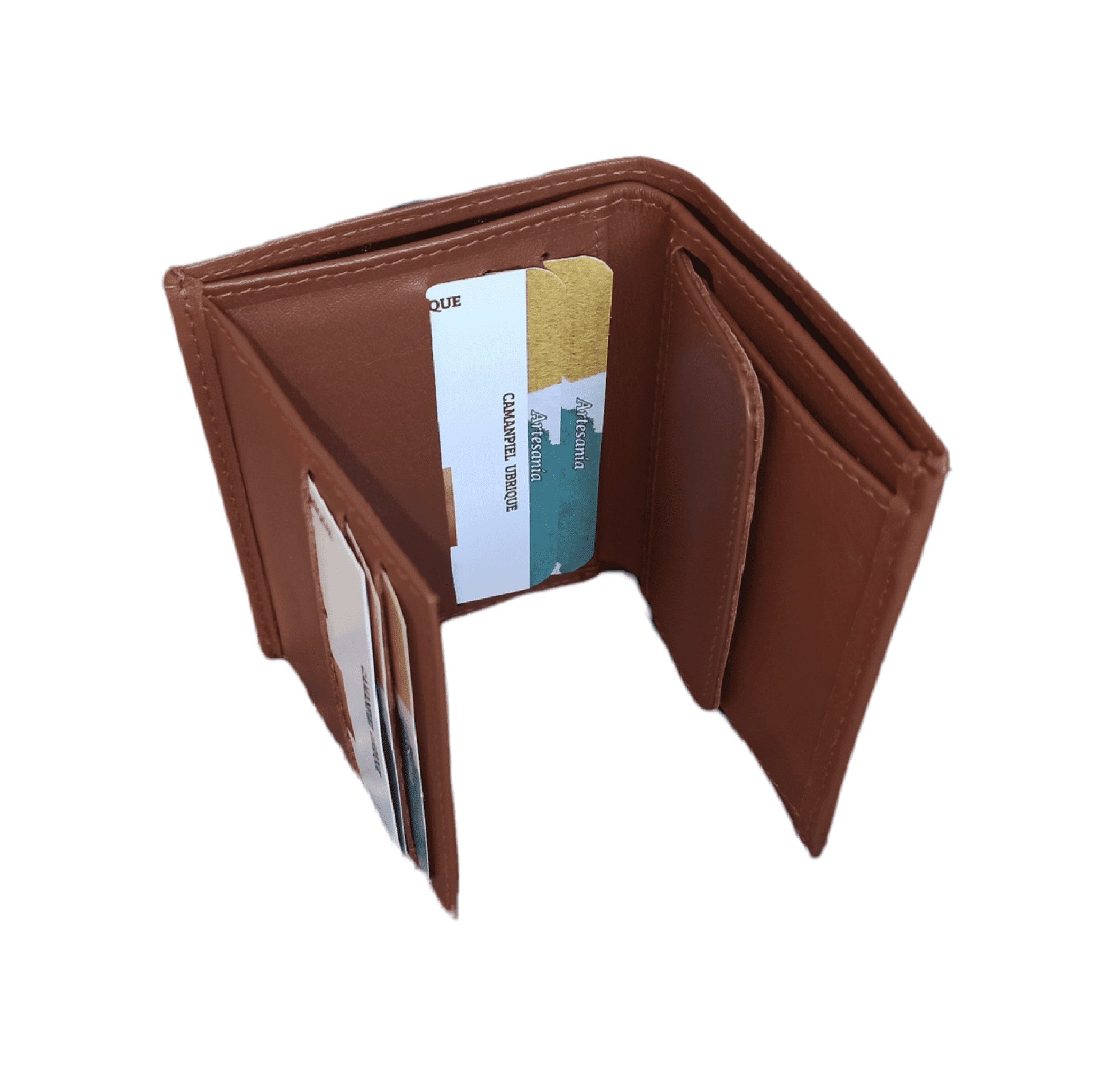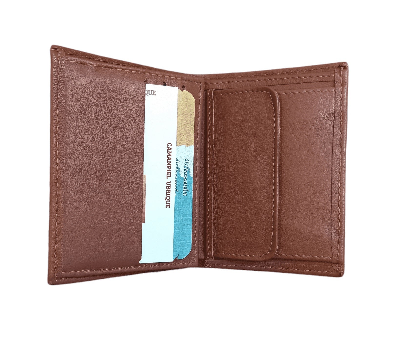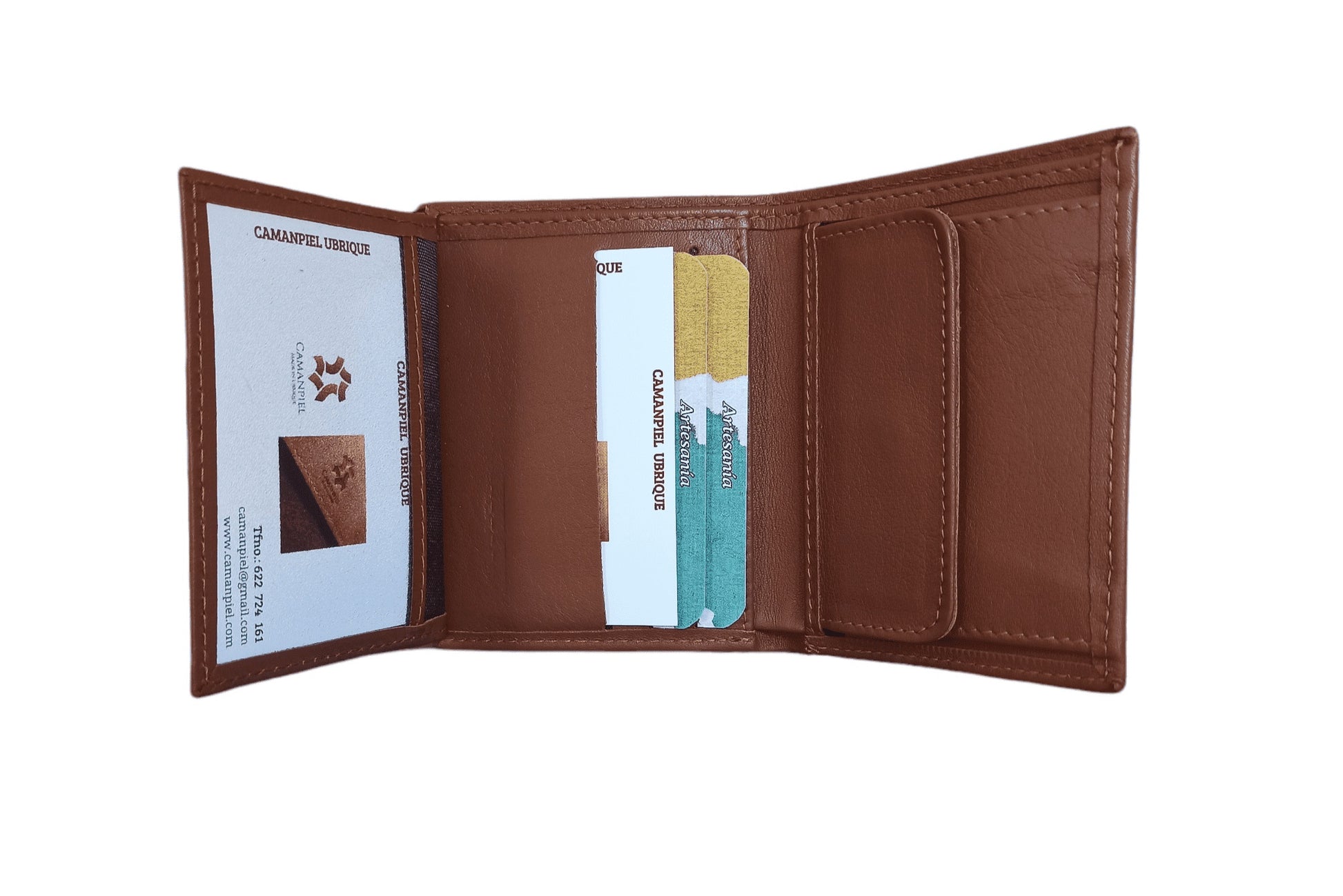 Cartera de piel auténtica elaborada en Ubrique, cuna de la marroquinería española. Confeccionada en piel marrón. Diseño funcional con 7 compartimentos interiores y monedero interior, tarjetas y efectivos.