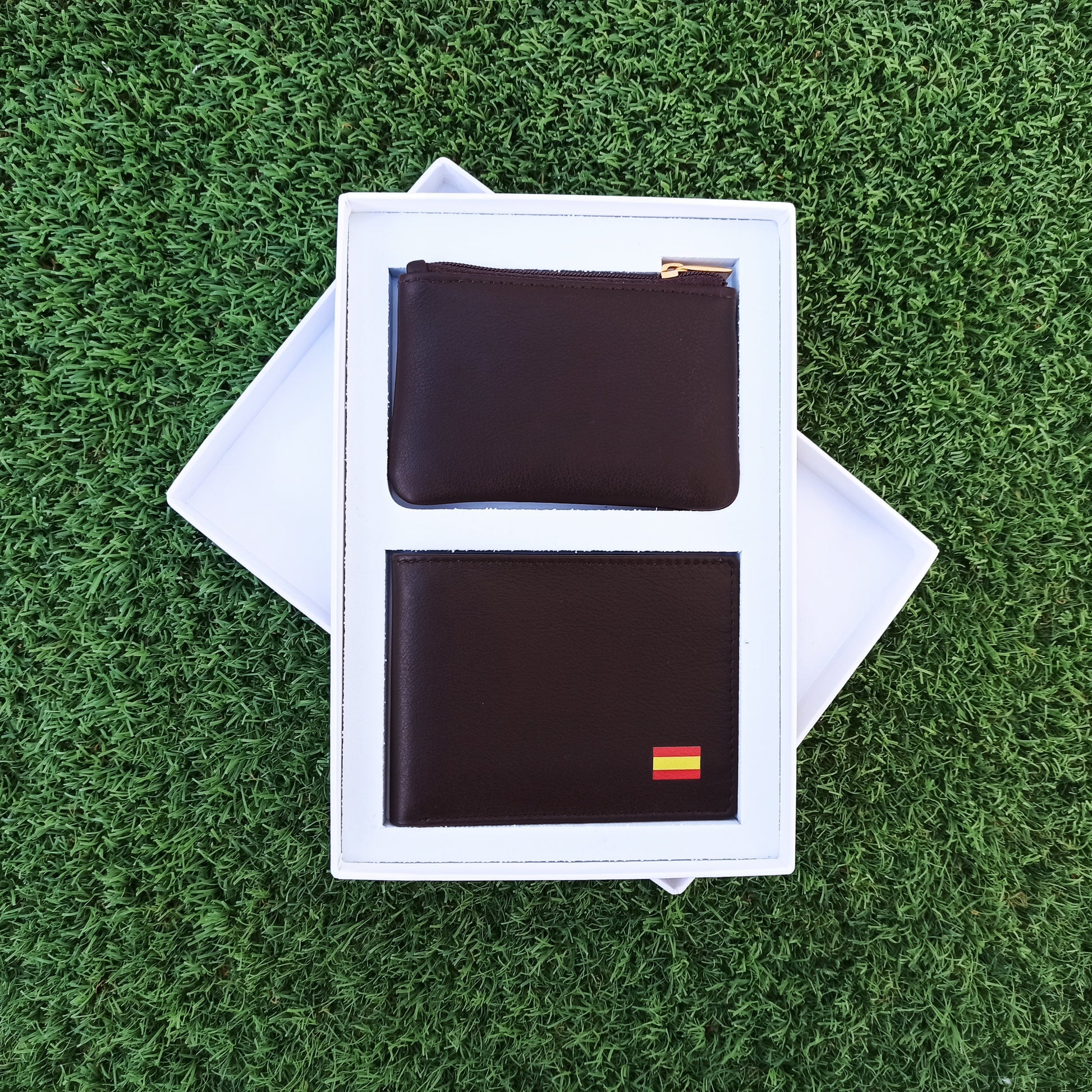 CARTERA + MONEDERO DE PIEL. MARRÓN. PACK