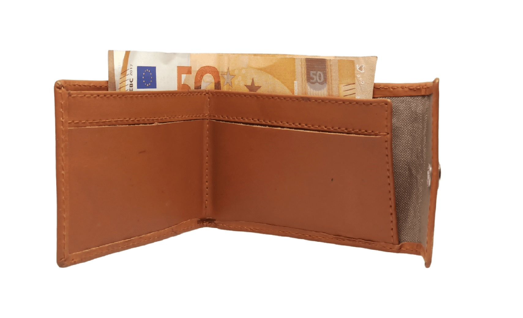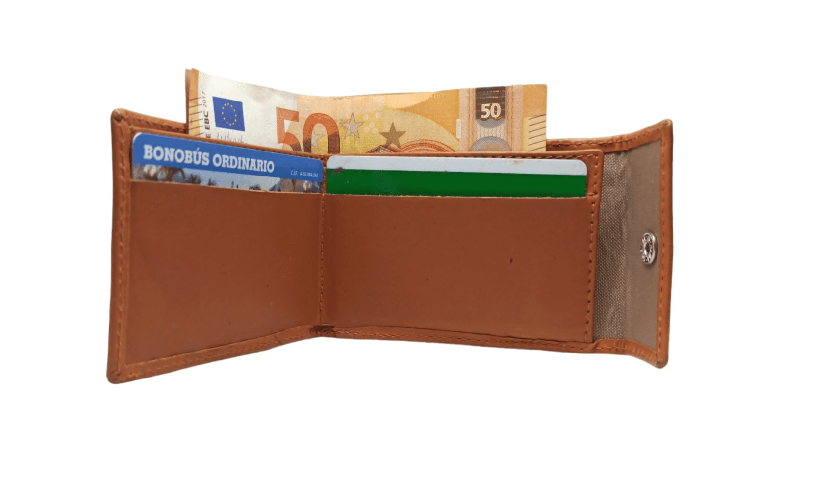 Billetero para billetes doblados. Monedero exterior con cierre de broche. 4 huecos para tarjetas.