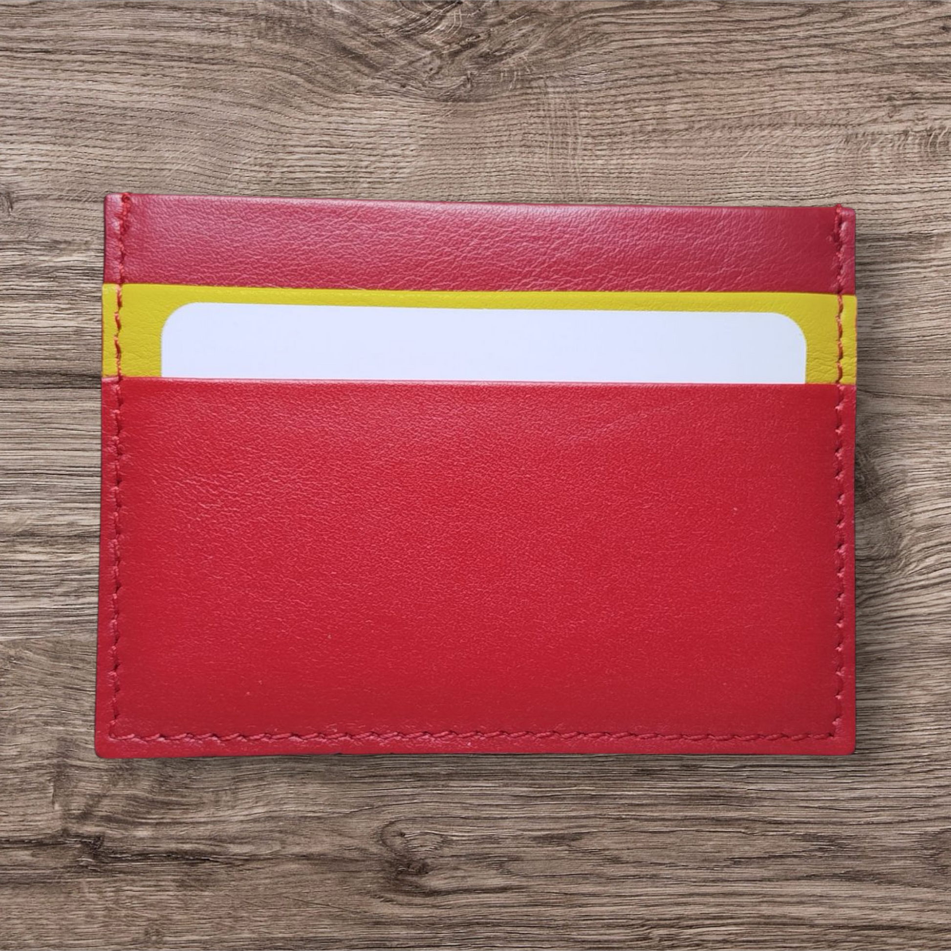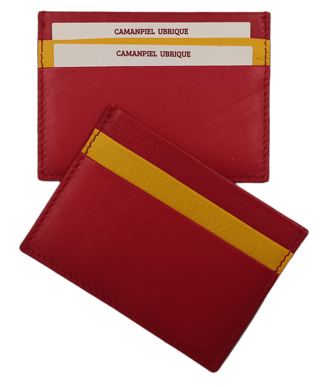 TARJETERO FABRICADO EN AUTÉNTICA PIEL. COLORES DE LA BANDERA DE ESPAÑA.